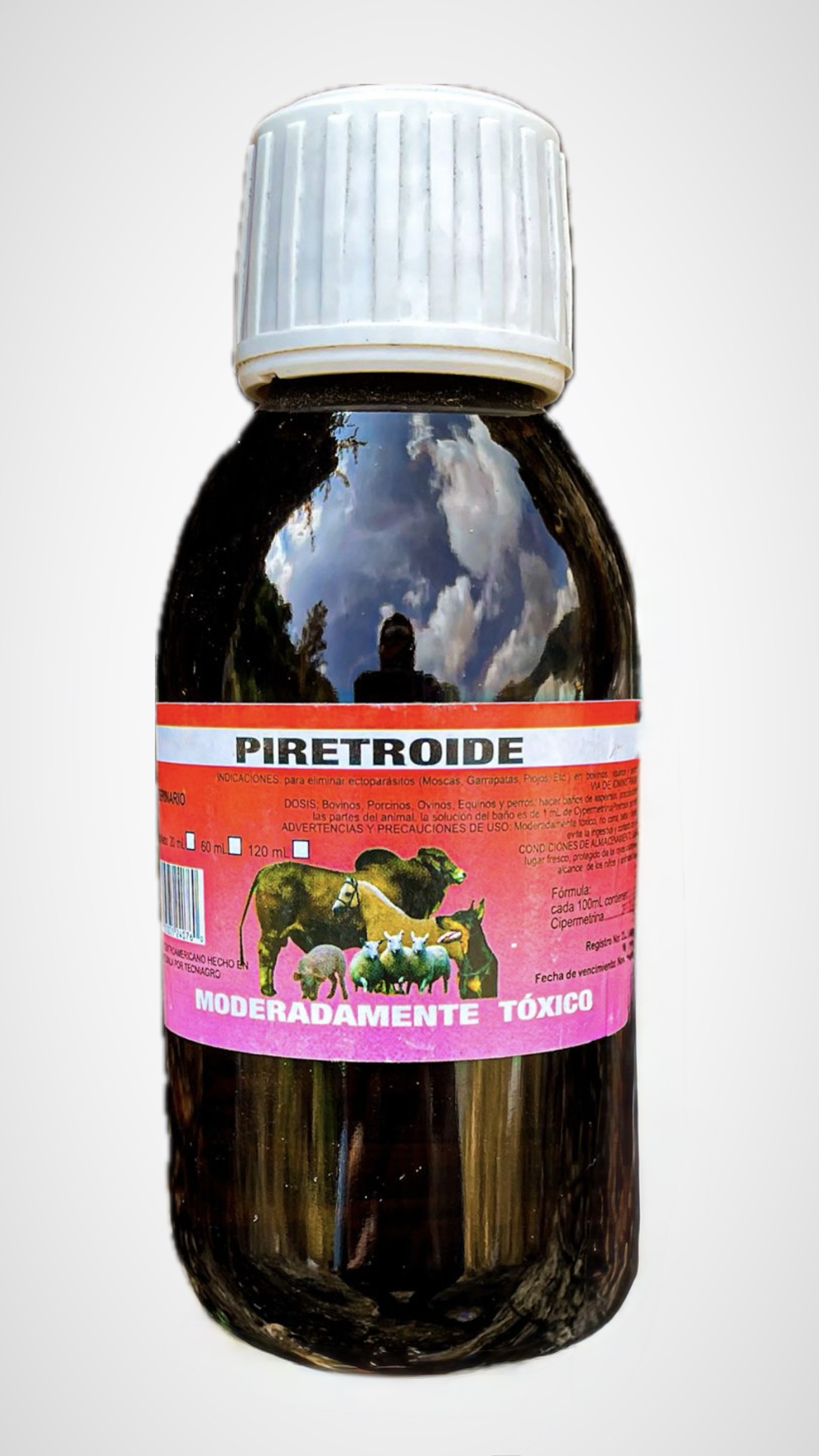 Bovinos, porcinos, Ovinos, Equinos y perros: hacer baños de aspersión, procurando cubrir todas las partes del animal, la solución del baño es de 1 mililitros de Cipermetrina Piretroide por litro de agua.
